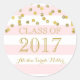 Pink Stripe Gold Confetti Abschluss Class of 2017 Runder Aufkleber