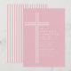 Celebrate her sacred milestone with this elegant pink striped First Holy Communion invitation. Featuring a clean white line cross on a soft blush pink background with coordinating classic stripes on the reverse, this design blends timeless Catholic tradition with a sweet, refined aesthetic.