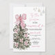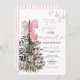 Pink Stripes Bow Christmas Tree Couple Wedding Einladung