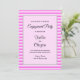 Dieses "Pink Stripes Gerahmte Engagement Party Invitation" Design zeigt die Schönheit der Einfachheit und Eleganz. Laden Sie Ihre Freunde und Familie ein, sich der Freude und Vorfreude an Ihrer bevorstehenden Hochzeit anzuschließen. Bestelle noch heute!