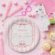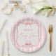Pink stripes retro bow border elegant baby shower pappteller