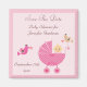 Hübsche rosa und braun personalisierte anpassbare Save the Date Baby Dusche / Gevor Magnet mit einer niedlichen Vektorgrafik von Baby Girl in einem schönen rosa Roller. Es gibt einen hübschen Vogel auf dem Roller und einen rosa Vogel fliegen mit einem rosa Umschlag - Web Design Hot. Der Text ist vollständig an Ihre Bedürfnisse angepasst und Designobjekte können verschoben und neu formatiert werden. Ein weiteres lustiges Produkt von Groovy Graphics.