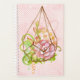 Die schöne Aquarellbilderung zeigt einen rosa-weiß gefärbten Hintergrund mit einer Vielzahl von Sukkulenten in einem offenen geometrischen Stil Terrarienpflanzer