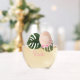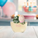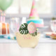 Dieses tropische Junggeselinnen-Abschied-Weinglas besticht durch einen amüsanten Hut und eine Sonnenbrille, die von tropischen Monstera-Blätter hervorgehoben werden.