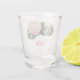Dieses tropische Junggeselinnen-Abschied-Shooting-Glas bietet einen lustigen Hut und Sonnenbrille gruppiert durch tropische Monstera-Blätter Ihren Namen, Ort und Datum, um diese lustige Erinnerung zu personalisieren.