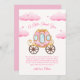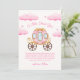 Pink cute adorable elegant "Little prince is on the way" , "once upon a time" baby shower theme, the perfect way to celebrate the new baby on the way with a fairytale princess themed baby shower. Perfect for a girl baby shower, design features pink gold vintage magical carriage on the pink cloud and stars, Personalize this baby shower invitation by adding names, date, time, venue and other details.