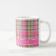 Start your day with vibrant style! This Personalized Plaid Coffee Mug features a fun, trendy Pink, Green, and White Tartan Plaid pattern. This mug can be customized with a last name, first name, or monogram initial. It's a perfect trendy gift for birthdays, a stocking stuffer, or a bright, cheerful addition to your kitchenware