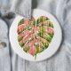 Pink Tartan Scottish Monstera Watercolour Botanic Button