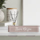Auf der eleganten Schreibtisch-Typenschild finden Sie Ihren Namen, Ihren Titel oder Ihre Personalisierungswahl in weißem handgeschriebenem kursivem Schriftsatz auf einem neutralen, rosa taupischen Hintergrund.