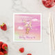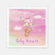 Niedlicher Teddybär, der rosa Ballons hält, während er durch eine Sternenhimmel-Papierserviette für Ihre Babydusche schwebt.