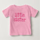 Pink Text kleine Schwester T - Shirt, lange Ärmel T-Shirts, Körper-Anzüge, Bio Körper-Anzüge, Tutu Körper-Anzüge, ärmellose Kleider, Rüffel-Shirts und Kleider, Hüte, Pullover-Hoodies, Sweatshirts, raglan ärmelige T - Shirt, und andere Kleidung für Kinder, Babys und Kleinkinder, die eine kleine Schwester sind! Man kann diese kleinen Schwesterkleidung, T - Shirt, Körperanzüge und andere Kleidungsstücke leicht personalisieren, indem man einen Namen unterhalb des rosa Textes hinzufügt.