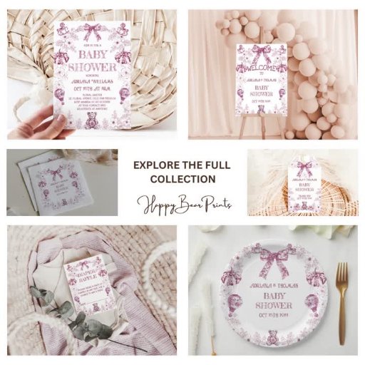 Pink Toile Bear Floral Girl Babydusche Einladung