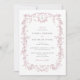 Eine hübsche französische Hochzeitsinie mit einem Vintagen Blumenrahmen in sanften rosa, staubigen Tönen und einem modernen Schriftart. Diese stilvolle Einladung ist einfach zu bearbeiten und eignet sich perfekt für eine Hochzeit mit dem Thema Chinoiserie. Pair mit allem aus der FLORIA Kollektion für ein einheitliches Aussehen.