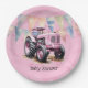 Pink Tractor Flag Wasserfarbe Girl Babydusche Pappteller