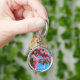 Hübscher personalisierter sommerlicher Schlüsselanhänger mit rosa Baumblüten und blauem Himmel.