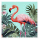 Niedliche tropische Rosa Flamingos und Monstera Blätter Poster