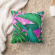 Dieses helle, tropische Akzent Kissen mit einem Hintergrund aus Blätter aus rosa Palmen und verschiedenen grünen Palmentönen, die auf dem Boden verstreut sind. Ideal für jede tropische Stranddekoration und gut mit innen und außen!