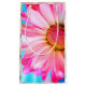 Ein hellrosa Farbtupfer vor einem hellblauen Hintergrund. Die Seiten des Beutels sind mit gemusterten Polka-Punkten aus Wasser verziert.