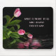 Bouquet aus rosa Tulpen mit Reflexion auf schwarz mit inspirierendem Zitat.