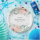 Ein wunderschön feminin personalisiertes Babyduschdesign mit Bouquet-Rändern von Aquarellmohn, Rose, Eukalyptus und hinterem Grün in Pastellbeige, Rosa, Grün und Blau-Grün. Personalisieren Sie die Textvorlage mit dem Namen der künftigen Mutter. In diesem Design stehen Babydusche-Party-Zubehör und Einladungen zur Verfügung, um Ihre Veranstaltung in schönem Stil zu koordinieren.