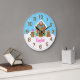 Diese niedliche und festliche Uhr kann mit einem Namen personalisiert werden. Das Design umfasst ein niedliches Lebkuchenhaus, das mit rosa und grünen Weihnachtskerzen dekoriert ist. Daneben sind bezaubernde Lebkuchenmänner mit Geschenken, in Weihnachtsmannmützen und Schal gekleidet. Im Hintergrund ist ein hellblauer Winterhimmel mit eleganten fallenden Schneeflocken.