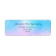 Adressieren Sie Labels mit einem skurrilen Hintergrund. Ein pastellrosa und blaues Farbschema mit Farbverlauf. Kleine weiße Sterne verstreut herum. Whimsikisches und magisches Design.