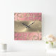 Pink und Gold Time Flock Quadratische Wanduhr
