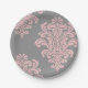 Ein wunderschönes feminines Design in rosa Damast auf grauem Hintergrund. Dieser Teller eignet sich hervorragend für Brautpartys, Geburtstagsfeiern, Hochzeiten und andere Veranstaltungen. In diesem Design stehen passende Papierservietten, Packpapier, Einladungen und Geschenktaschen für einen schönen, koordinierten Blick auf Ihre Veranstaltung zur Verfügung.