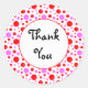 Ein Dankeschön Aufkleber mit rosa und roten Punkten groß und klein in einem niedlichen Retro-Hintergrund. Klicken Sie auf Anpassen, um Schriftart, Hintergrundfarben und vieles mehr zu ändern, und rettete Sie Ihr Design sogar für später.