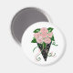 Ein hübsches Design mit einem rosa Rosenstrauß mit dunkelgrünem Blattwerk und den darauf folgenden Bändern. Ein schwarzer Ärmel mit weißen Polka-Punkten macht eine Aussage von Eleganz.