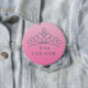 Holen Sie sich eines dieser niedlichen Buttone für alle, die zu Ihrer Seite kommen, um Ihnen Unterstützung zu geben. Silver Tiara auf einem rosa Hintergrund, mit viel Platz, um Ihren eigenen Text hinzuzufügen.