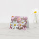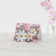 Delikate, rosa und weiße dunkle Blume mit gelben Mittelpunkten sind Set vor einem weichen, unscharfen rosa Hintergrund für eine leere Notenkarte
