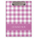 Pink und White Gingham Prüfmuster Name Print Klemmbrett