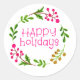 Pink und White Happy Holidays Wreath Runder Aufkleber