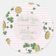 Dieses bezaubernde und weibliche Dankeschön-Aufkleber ist mit einem handgezeichnet Glück vergoldeten Kleeblatt-Münzen und grünen Klee auf einem horizontalen pinstripe Muster in Pastellrosa und Weiß. Name, Ereignis und Datum können bearbeitet werden. Ideal für die Dekoration von Kostümen und Schachteln für St. Patrick's Day & März Babyduschen, März Baby Birthdays..