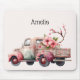 Mousepad mit einer süßen skurrilen Aquarellbilderin. Pfirsich und rosa Farben. Pickup-LKW mit einem alten Holzbett mit Kirschblüten.