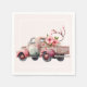 Papierservietten mit einer niedlichen Darstellung der Wasserfarbe. Pfirsich und rosa Farben. Lieferwagen-LKW mit einem alten Holzbett mit Kirschblüten-Blume.
