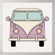 Dieses lustige Poster bietet einen Vintagen Retro-Wohnwagenbus in sanften Rosa- und Cremetönen. Eine niedliche Ergänzung zu jedem Kinderzimmer.