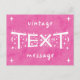 Pink Vintage Textnachricht Postcard! Ich habe das neulich online gesehen und es hat mich aufgerissen. Ich dachte, es würde Spaß machen, eine gefaltete Karte und eine Postkarte mit dieser Nachricht zu erstellen. Wir leben in einer Welt, in der jeder Dinge sofort sieht, in der die Menschen Informationen zur Hand haben oder jemandem eine SMS schreiben können. Ich Liebe, Notizen an Familie und Freunde zu schicken und liebte diese skurrile Haltung in der heutigen Gesellschaft!