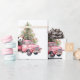 Rosa Vintager Lkw und Panda Bärenverpackungspapier. Wasserfarbe zeichnend von einem niedlichen weißen Panda Bär in einem rosa Vintagen LKW und Weihnachtsbäume mit Bauern.