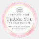 Elegant business thank you stickers with a faux gold look (printed image) and pink watercolor border. Customizable text: "Thank you for your business" with your company name/URL and logo above and social media below. Move and resize the logo and other elements with the design tool.