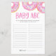 Baby ABC! Geben Sie für jeden Buchstaben des Alphabets einen Namen ein. Die erste Person, die fertig ist, gewinnt! | Fügen Sie diese lustige Baby ABC Spielkarte zu Ihrer Babydusche hinzu. Diese Baby Dusche Trivialkarte verfügt über rosa WasserfarbenDonuts mit bunten Sprinklen. Personalisieren durch Hinzufügen von Namen, Ereignis und Datum. Dieses rosa Donuts Baby ABC ist perfekt für jede Babydusche Saison oder Thema.