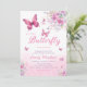 Pink Watercolor Floral Butterfly Girl Babydusche Einladung