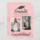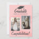 Pink Watercolor Graduate Herzlichen Glückwunsch 2 Foto-Karte. Trendy rosa Wasserfarbenstreifen. Personalisieren Sie mit 2 Fotos und dem Namen des Absolventen auf der Vorderseite und der Nachricht auf der Rückseite der Karte oder löschen Sie sie.