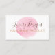 These business cards are for handmade products such as skincare, candles and soap. Das Design Feature hat pink watercolor dot on white background.