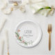 Eine schöne Papiertüte aus Brautparty in rosa Tulpen für eine Frühlingsdusche. In der Mitte des Tellers befindet sich ein Goldring der Rose.