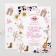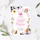 Sattelt euch für eine lustige Feier mit dieser pinkfarbenen Western-Rodéo-Einladung zum ersten Geburtstag! Mit Cowboy-Stiefeln, Hut, Lasso, Gitarre, Sheriff-Abzeichen, Kakteen und Kuh-Druck-Akzente versehen, erfasst dieses Design den rustikalen Charme einer Rodéo-Party perfekt. Ideal für den ersten Geburtstag eines Mädchens, verbindet es spielerische Western-Illustrationen mit modernem Stil, um eine einzigartige und unvergessliche Einladung zu schaffen. Personalisiert sie einfach mit den Details eures Events und macht das erste Rodéo eurer kleinen Cowgirl unvergesslich!