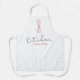 Dieses Design der Schürze zeigt eine minimalistische, handgezeichnet Illustration einer Hand, die einen Whisk hält, in sanften rosa Linien gerendert, gepaart mit elegantem schwarz kursiven Text für das Wort "Küche". Unten wird ein individualisierbarer Name in fett gedruckten Großbuchstaben in einem schicken rosa Schriftart geschrieben, was ihn zu einem personalisierten Geschenk macht.