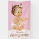 Mädchen Duschbanner mit bezauberndem Baby mit Kruffelhose und Perlen auf einem schönen rosa und goldenen Hintergrund. Dieses rosa und goldene Baby-Duschbanner lässt sich leicht mit Ihrem Schriftart in der gewünschten Farbe und dem gewünschten Wortlaut anpassen. Sie können auch die Hintergrundfarbe ändern.