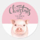 Pink White Pig Frohe Weihnachtsfamilie Name Runder Aufkleber